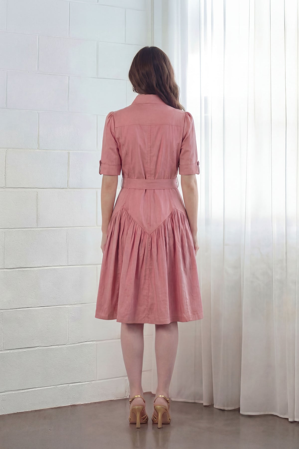 Introducing our Utility Midi Dress in romantic Dusk Pink, featuring the drop waist and band collar, this dress is such a flattering piece to add to your collection. Finished with crystal buttons along the full length of the dress and a pairing belt to define your silhouette.