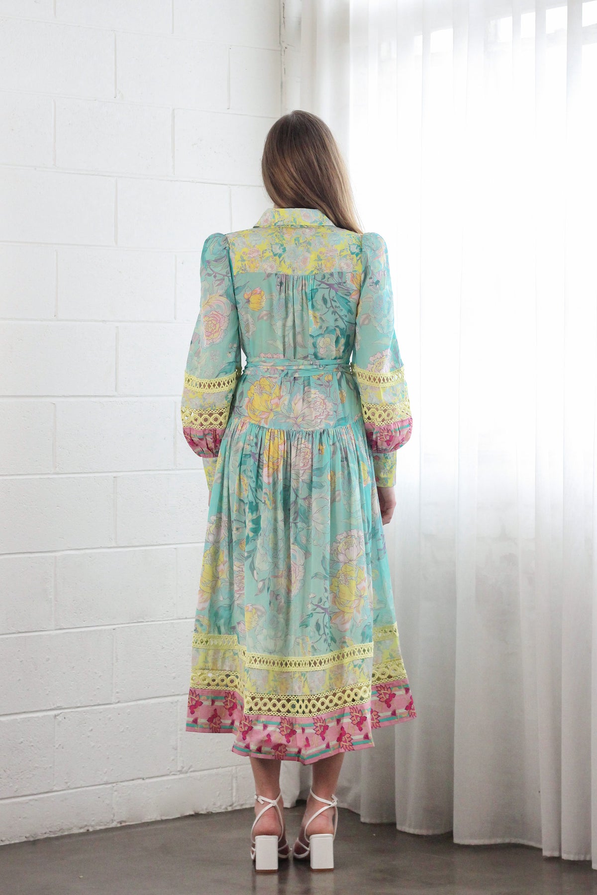 Meet the sophisticated Maxi Shirt Dress in Rose Azure. Crafted from a comfortable cotton and viscose blend, this dress features stylish long puffed sleeves with cuffs, and the bordered hem. Complete with the sash waist tie to create a flattering silhouette.