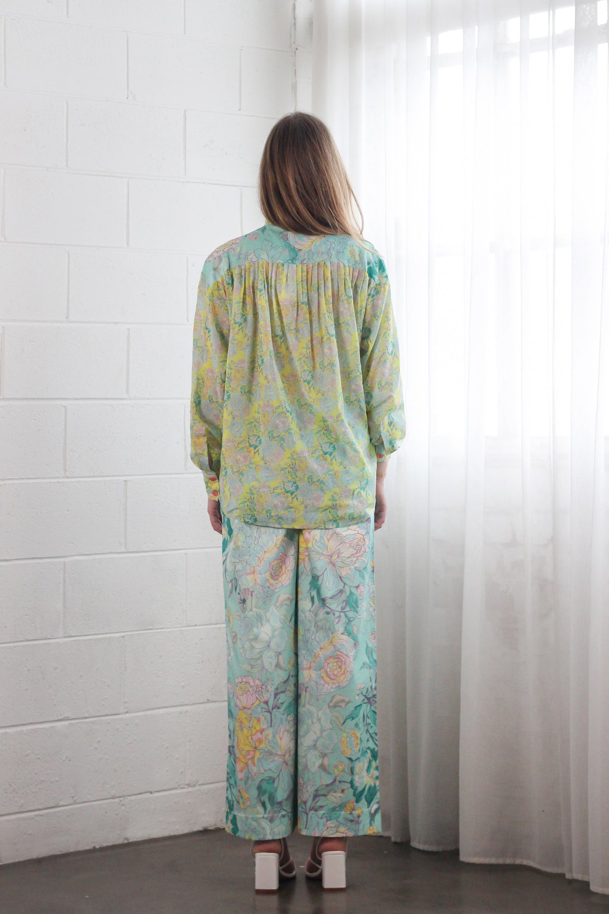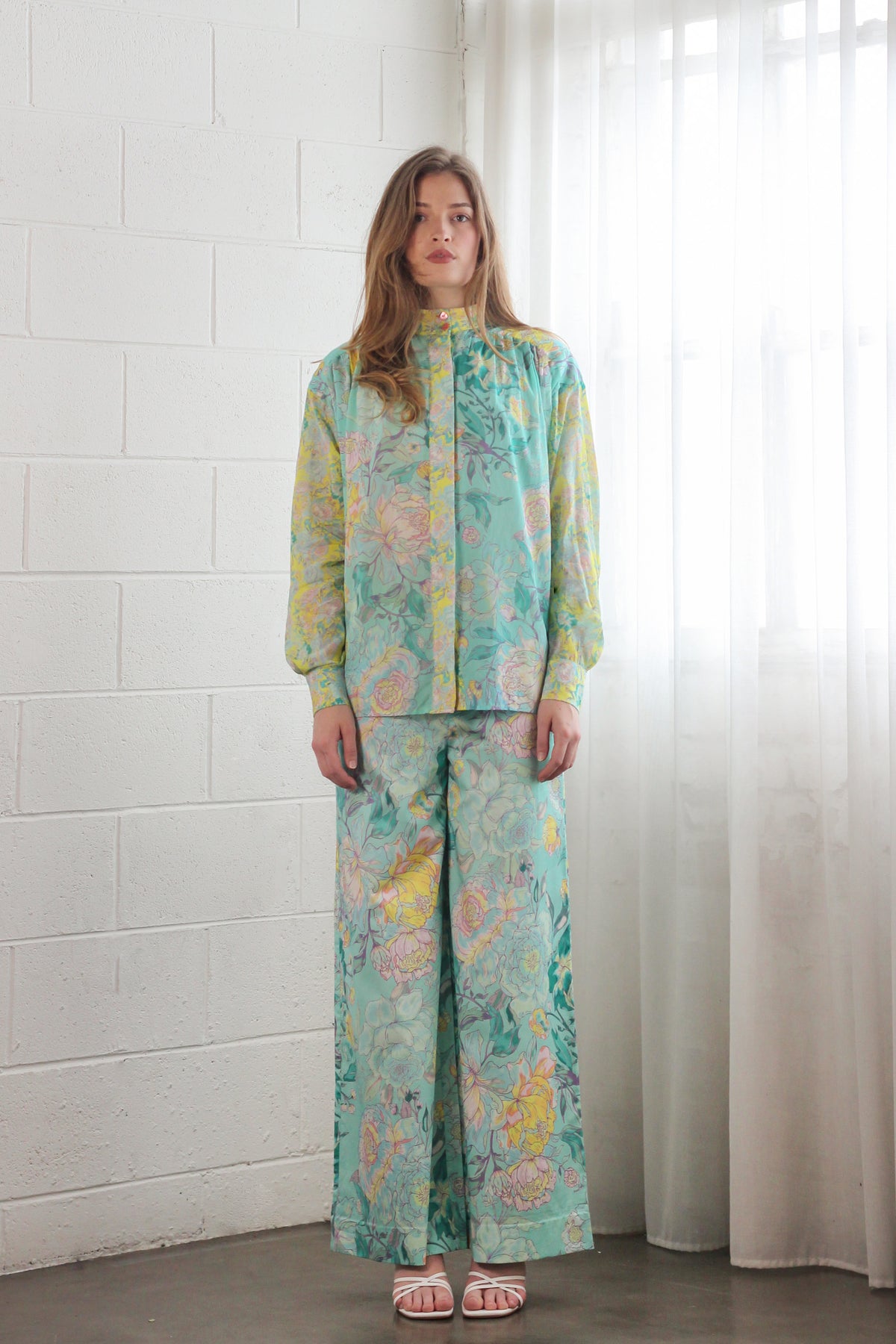 Introducing the Stand Collar Billow Blouse in Rose Azure, featuring the structured stand collar and oversized fit with pleats at the shoulders and chest adds texture and shape.  Designed to be worn tucked in or loose, this blouse is the perfect staple for the season. Pair it with the Elasticated High Waist Pant in the same print.